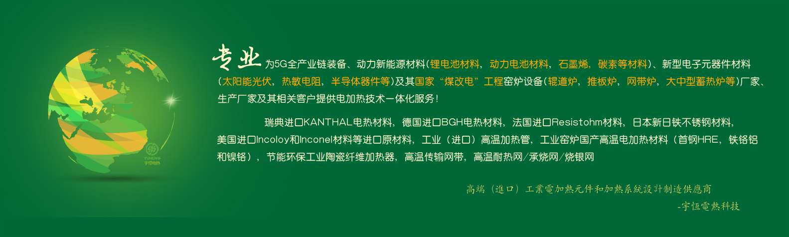 ??????公司專業(yè)生產(chǎn)各種精密電熱(電阻)合金、負(fù)載合金、各種電子陶瓷熱處理電熱元件、工業(yè)窯爐網(wǎng)帶及工業(yè)電加熱管。并代理和銷售瑞典進(jìn)口康泰爾電熱合金材料,日本新日鐵進(jìn)口不銹鋼材料,美國(guó)進(jìn)口Incoloy和Inconel材料等進(jìn)口合金產(chǎn)品。產(chǎn)品被運(yùn)用在5G產(chǎn)業(yè)鏈裝備、鋰電池正負(fù)極材料行業(yè)、"煤改電"行業(yè)、碳纖維行業(yè)、陶瓷電子專用設(shè)備、粉體材料、海綿鈦和釩鈦產(chǎn)業(yè)等領(lǐng)域。[詳情見(jiàn)宇恒產(chǎn)品]